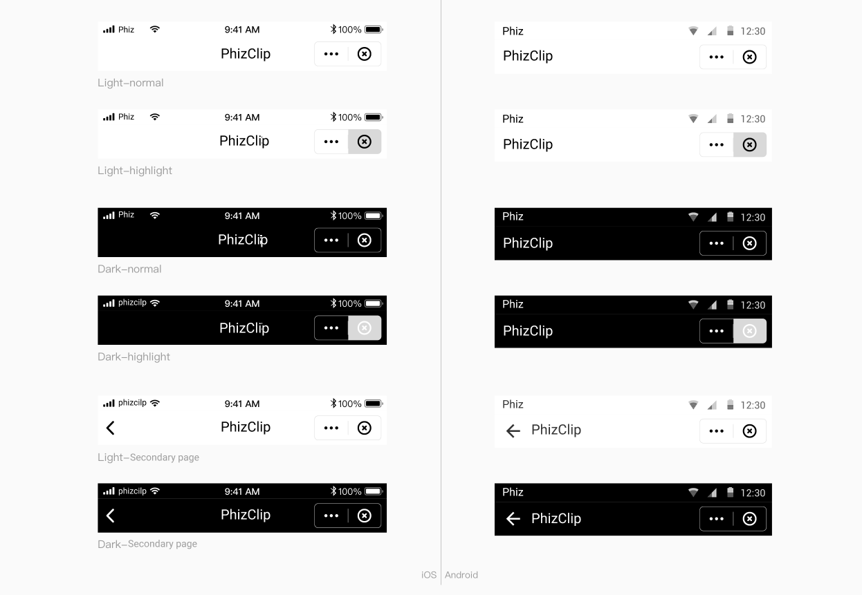 O PhizClip oferece suporte a uma variedade de métodos flexíveis de personalização. A fim de garantir a unidade visual geral do aplicativo, são estabelecidas as seguintes convenções, nas quais os desenvolvedores podem projetar a interface do usuário de acordo com essas diretrizes.