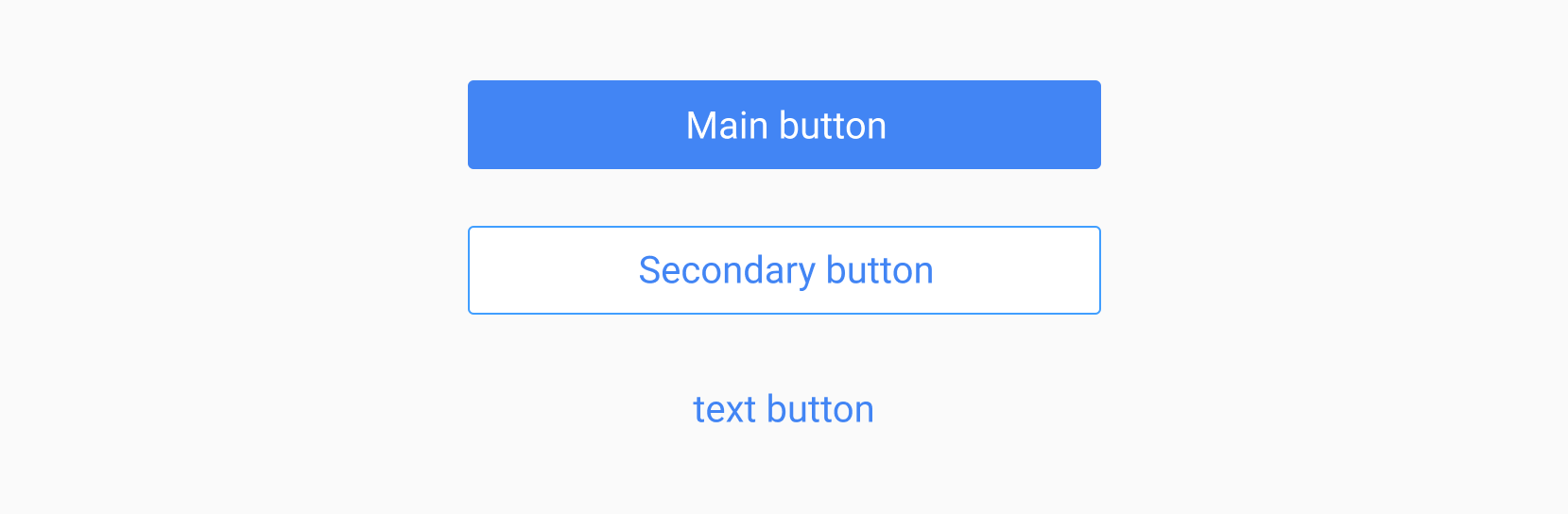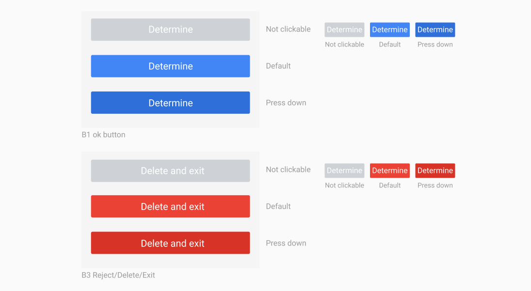 Os botões utilizados são principalmente divididos em botões principais, botões secundários e botões de texto, dos quais: